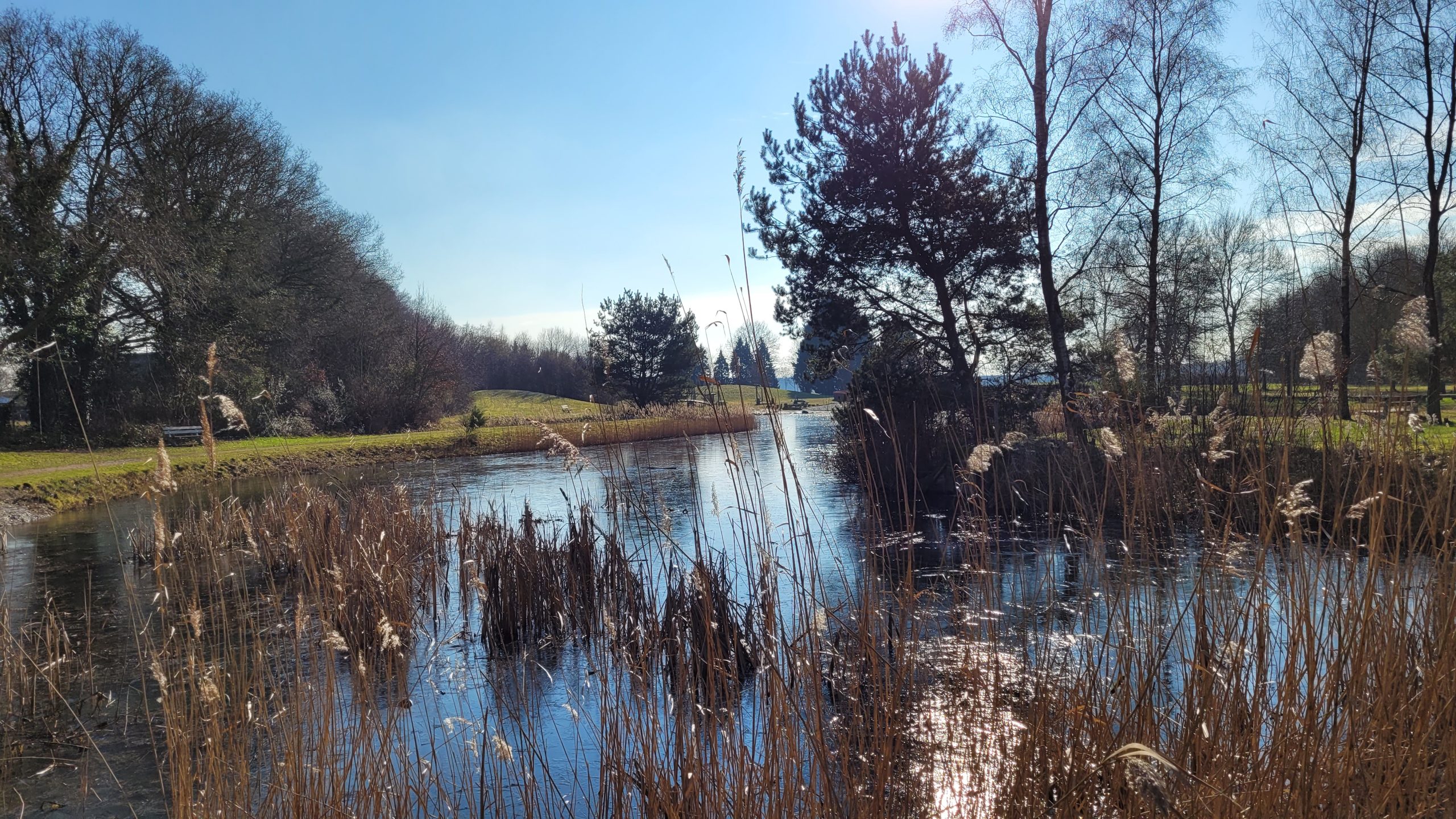 Nog iets nieuws: de laatste maanden ervaar ik een behoefte om zo nu en dan naar buiten te gaan voor een wandeling in de omgeving. Ik vind het ook leuk om anderen tegen te komen (hier groeten we elkaar allemaal heel vriendelijk, ook al ken je elkaar niet). Nu ook weer: de zon scheen, het was koud en er wordt weer sneeuw en narigheid verwacht. Ik kreeg echt een onvervalste wandelbehoefte en om ervan te genieten zolang dat nog kon.